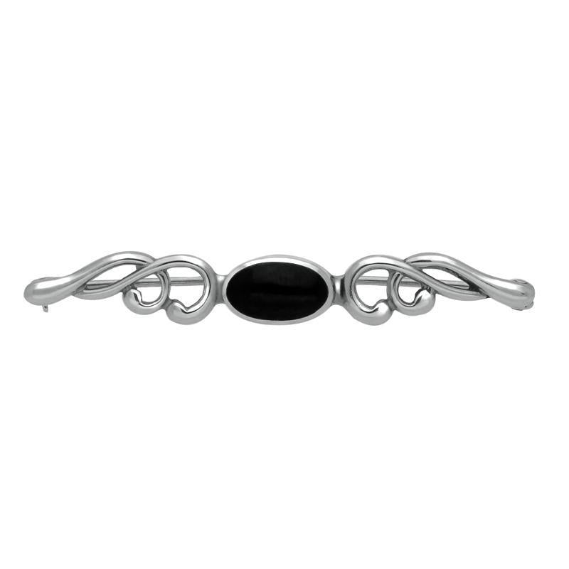 Sterling Silver Whitby Jet Scroll Bar Brooch, M101