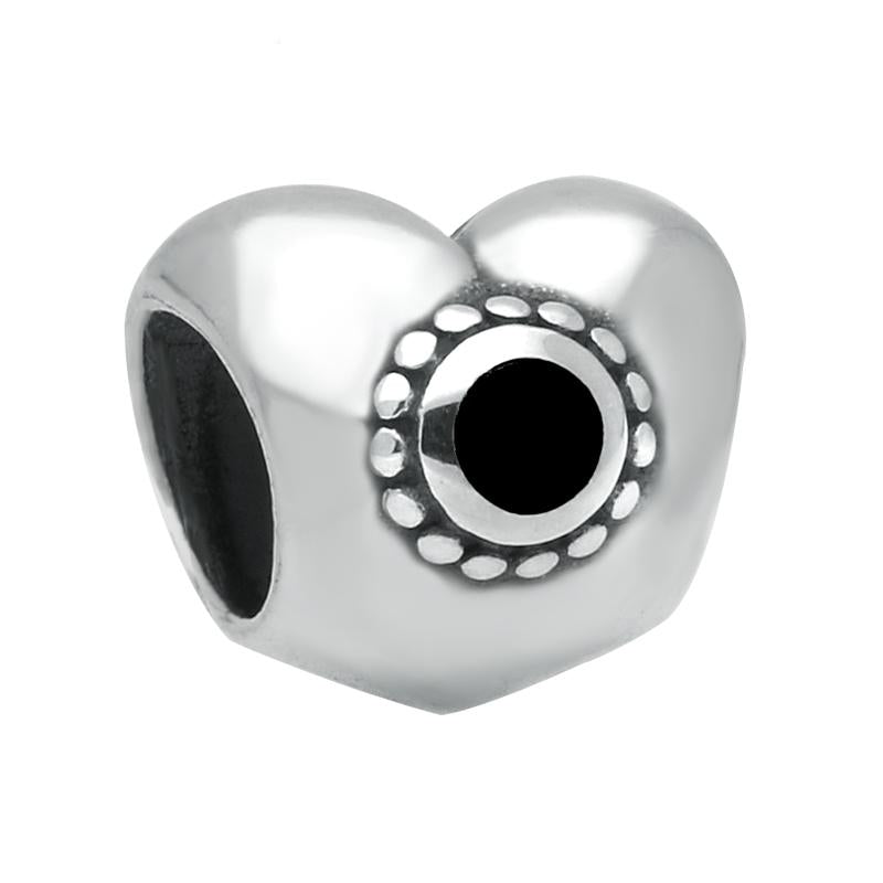 This beautiful sterling silver charm bead is hand crafted in our workshop by our highly skilled jewellery craftsmen. This charm features two hand carved round shaped Whitby Jet gemstones that are set into a sterling silver heart shaped settings. A lovely little memento of Whitby or a gift for someone special. Compatible with Pandora and Chamilia style bracelets
