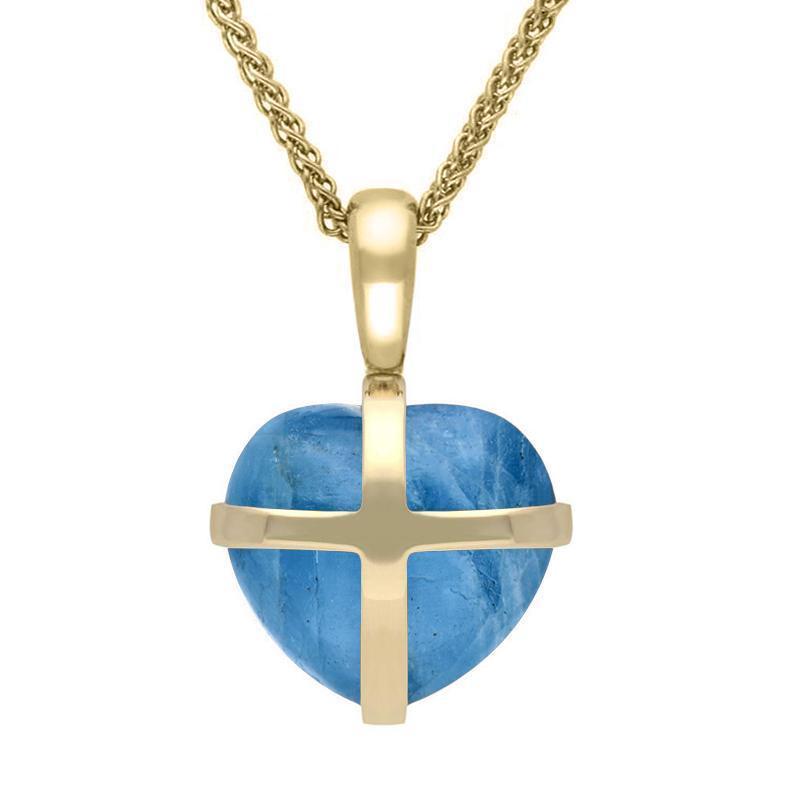 18ct Yellow Gold Aquamarine Small Cross Heart Necklace, P1544.