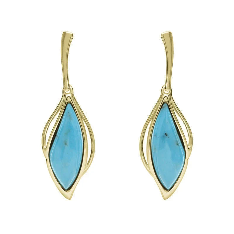 18ct Yellow Gold Turquoise Open Marquise Drop Earrings, E2437