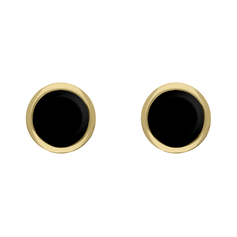 9ct Yellow Gold Sterling Silver Whitby Jet Stepping Stones 5mm Round Stud Earrings