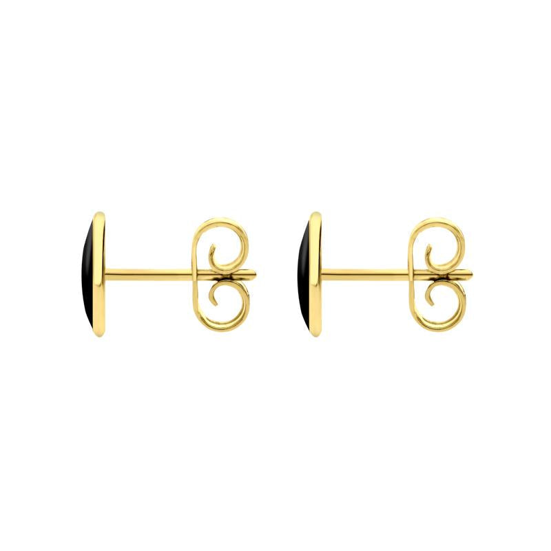 9ct Yellow Gold Whitby Jet Classic 8mm x 6mm Medium Oval Stud Earrings, E006