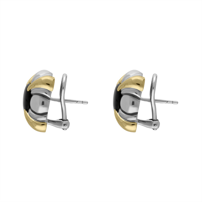 These charming sterling silver earrings, with 18ct yellow gold embellishments, feature the finest Whitby Jet, sourced directly from the north east coast of Yorkshire. The striking Whitby Jet creates a stunning contrast between the sterling silver making the perfect earrings for someone looking for a beautifully unique item of jewellery.
