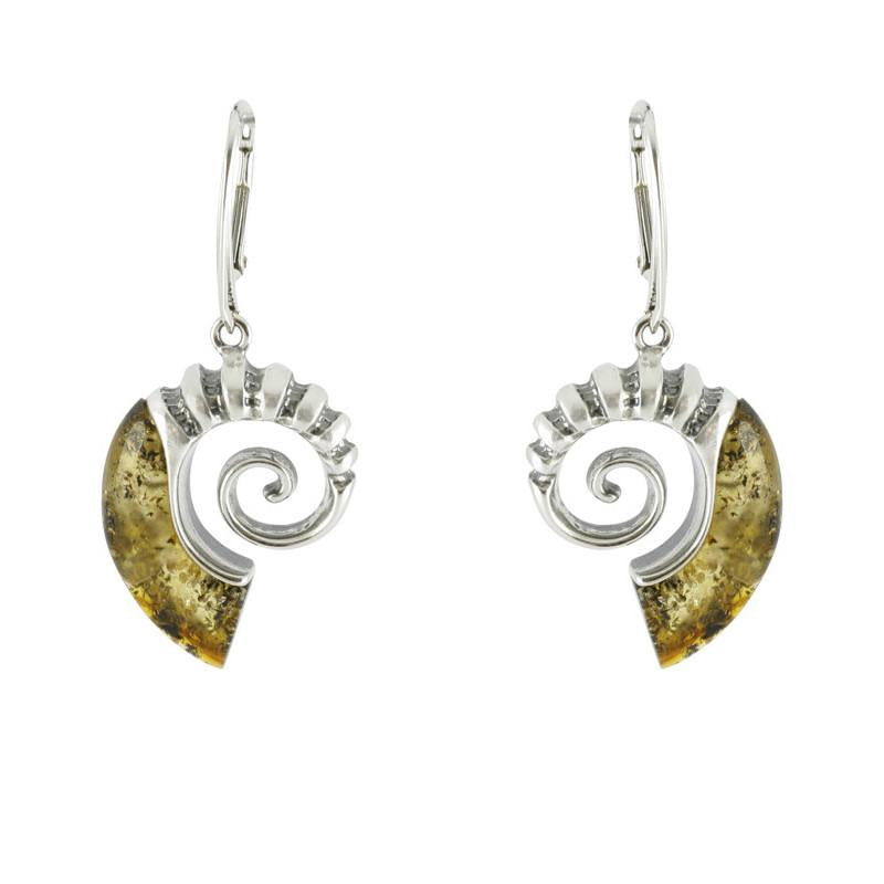 Sterling Silver Baltic Amber Shell Drop Earrings, E1766.