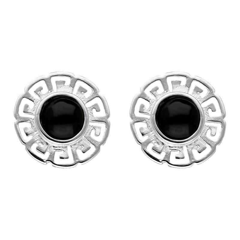 Sterling Silver Whitby Jet Greek Style Stud Earrings, E2421