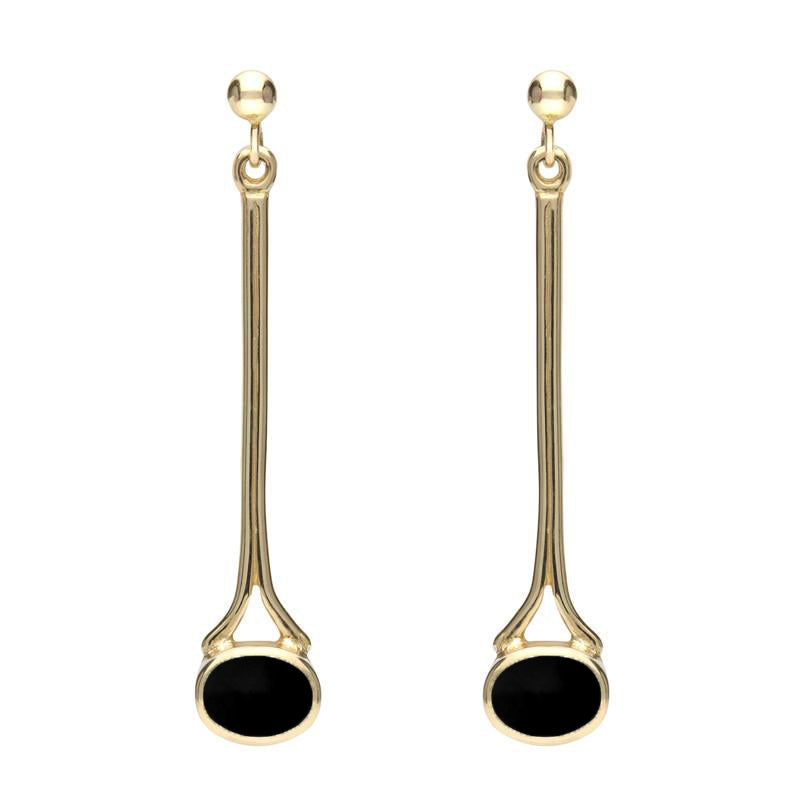 18ct Yellow Gold Whitby Jet Long Drop Earrings