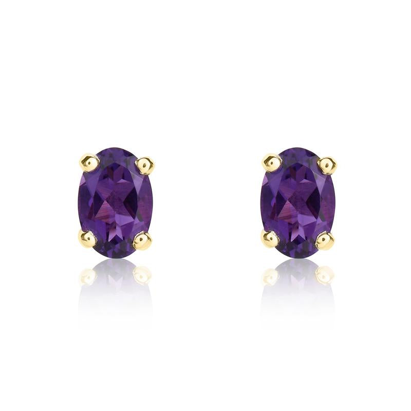 9ct Yellow Gold Amethyst 6x4mm Oval Claw Set Stud Earrings. 33-51-009.
