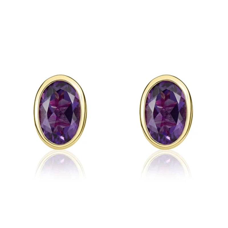 9ct Yellow Gold Amethyst 6x4mm Oval Rub Over Set Stud Earrings 33-51-011.