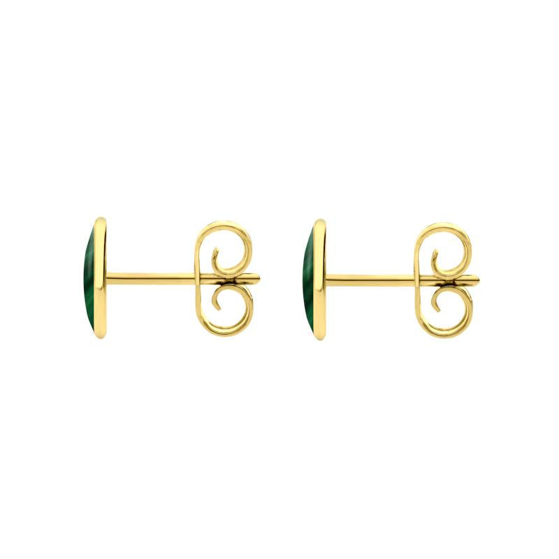 9ct Yellow Gold Malachite 7 x 5mm Classic Small Oval Stud Earrings, E005.