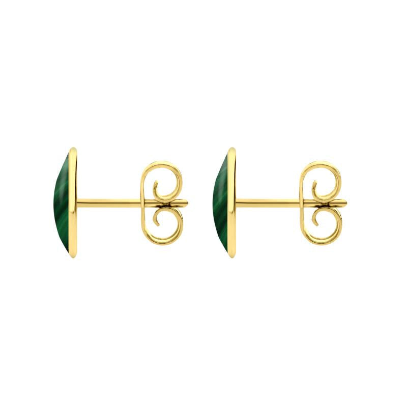 9ct Yellow Gold Malachite 8 x 10mm Classic Large Oval Stud Earrings