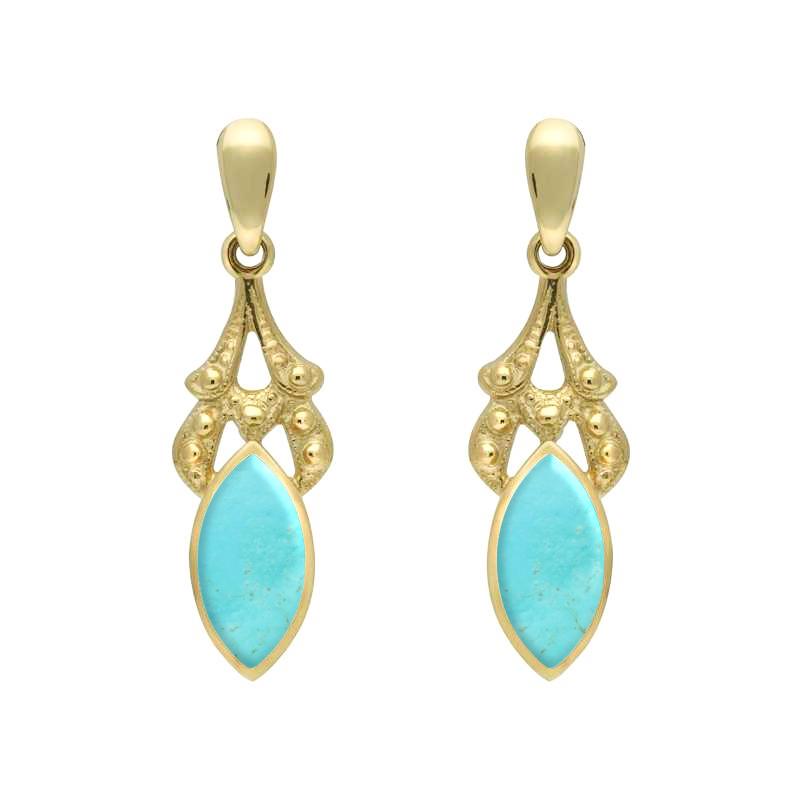 9ct Yellow Gold Turquoise Marquise Drop Earrings