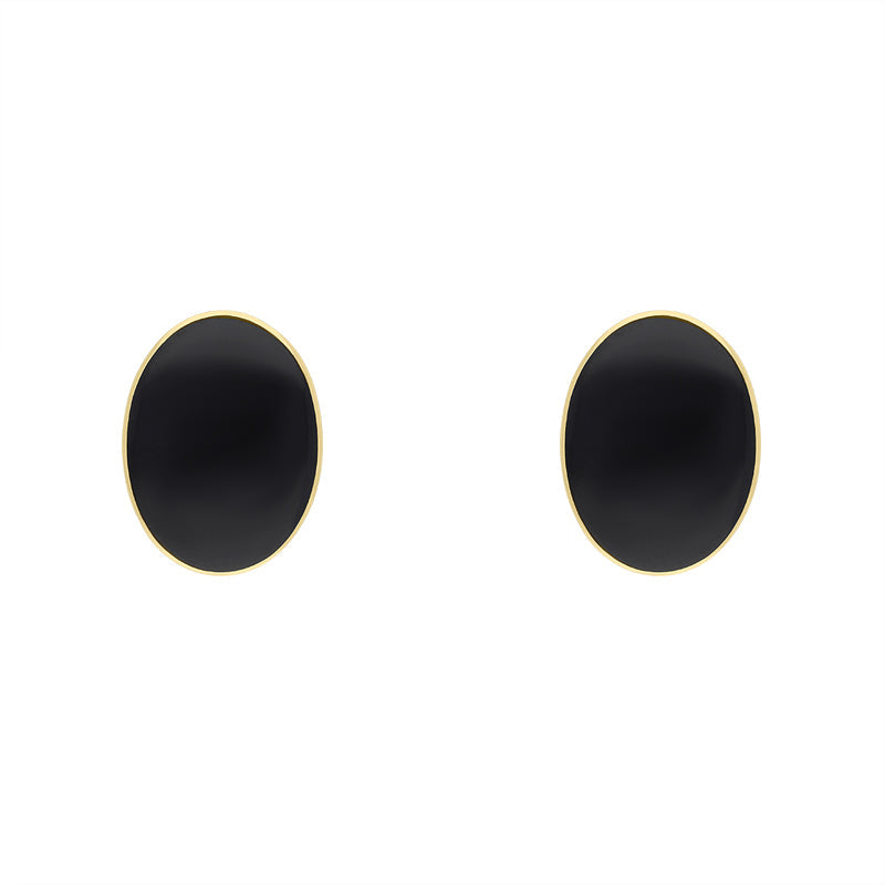 These stunning 9ct yellow gold earrings features the finest Whitby Jet. The striking Whitby Jet creates a stunning contrast between the yellow gold and makes the perfect dress earrings for someone looking for a beautifully timeless piece. Dimensions: 14 x 10mm.