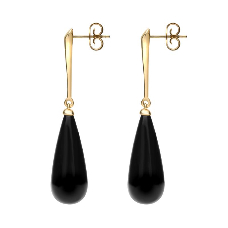 9ct Yellow Gold Whitby Jet Tapered Drop Earrings, E1426.