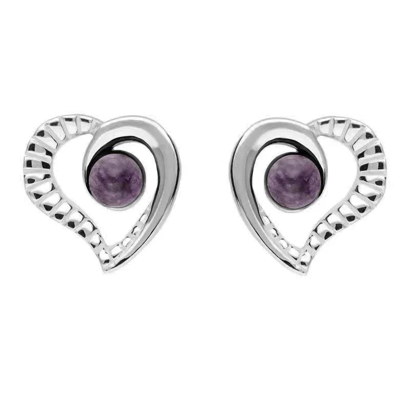 Sterling Silver Blue John Half Ridged Heart Stud Earrings, E1908.