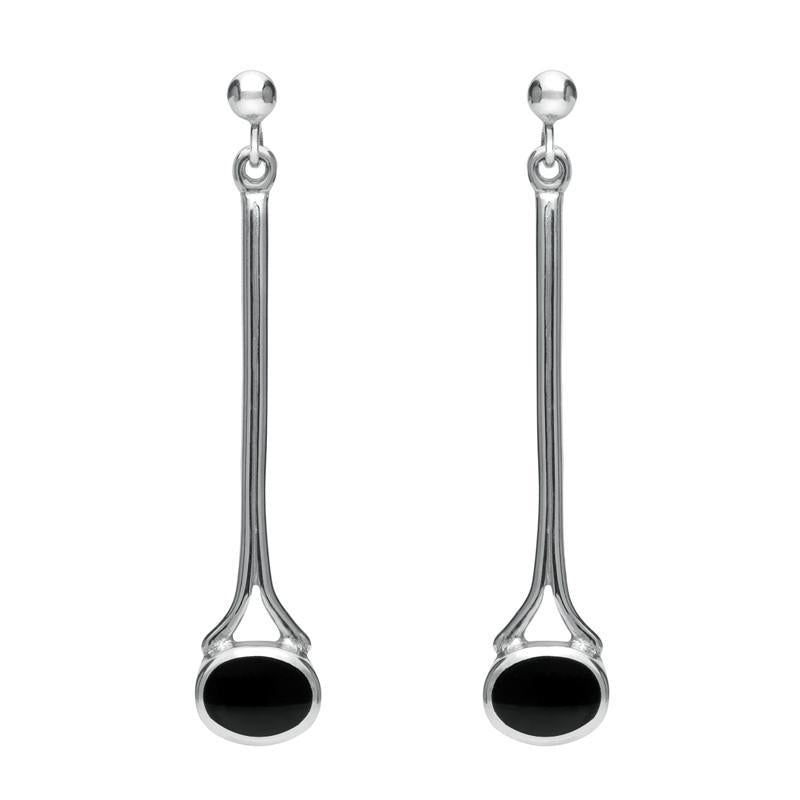 Sterling Silver Whitby Jet Long Drop Earrings, E094.