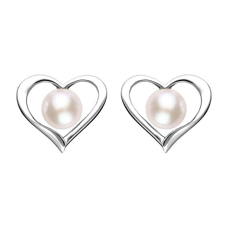 Each of these romantic earrings features a lustrous white pearl that sits in the centre of a beautiful sterling silver open heart frame. The stunning earrings are secured with post and butterfly fastenings for everyday wear.