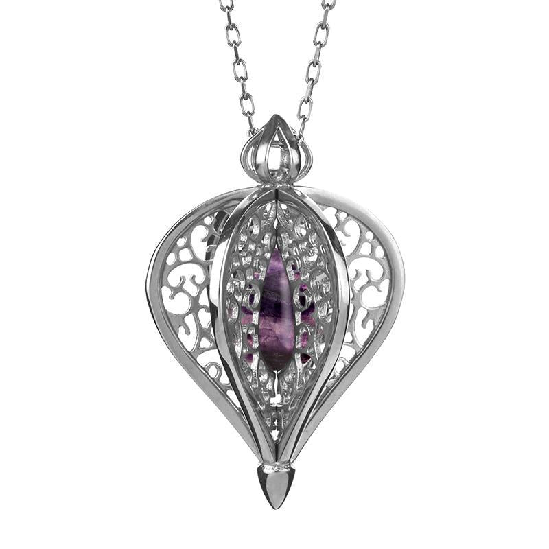 9ct White Gold Blue John Flore Filigree Small Necklace P2338C