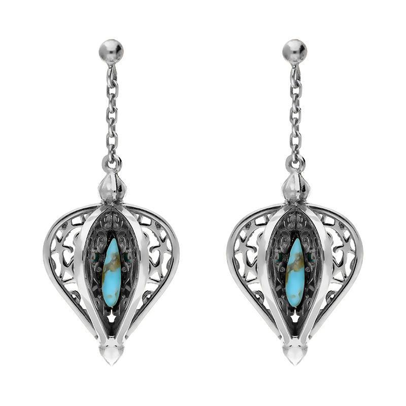 Sterling Silver Turquoise Flore Filigree Drop Earrings E1781