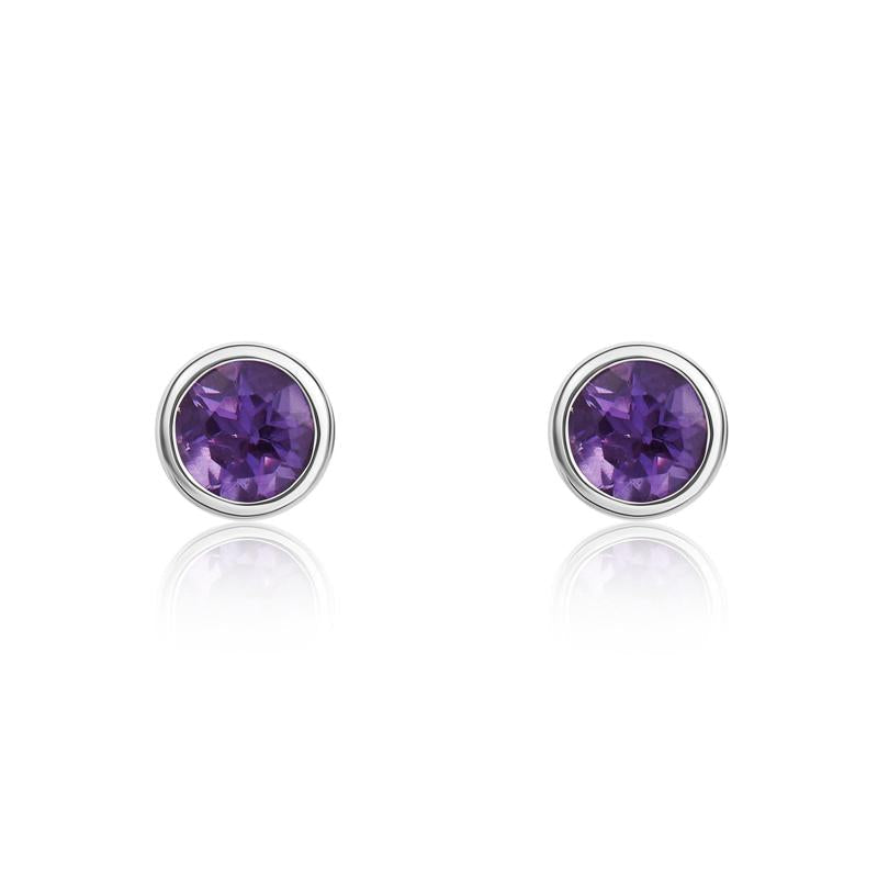 9ct White Gold Amethyst 3mm Round Rub Over Set Stud Earrings. 33-51-071.