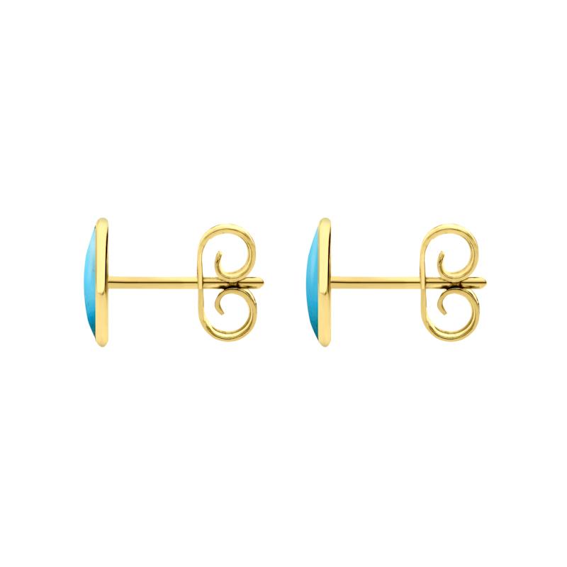9ct Yellow Gold Turquoise 8 x 6mm Classic Medium Oval Stud Earrings, E006.