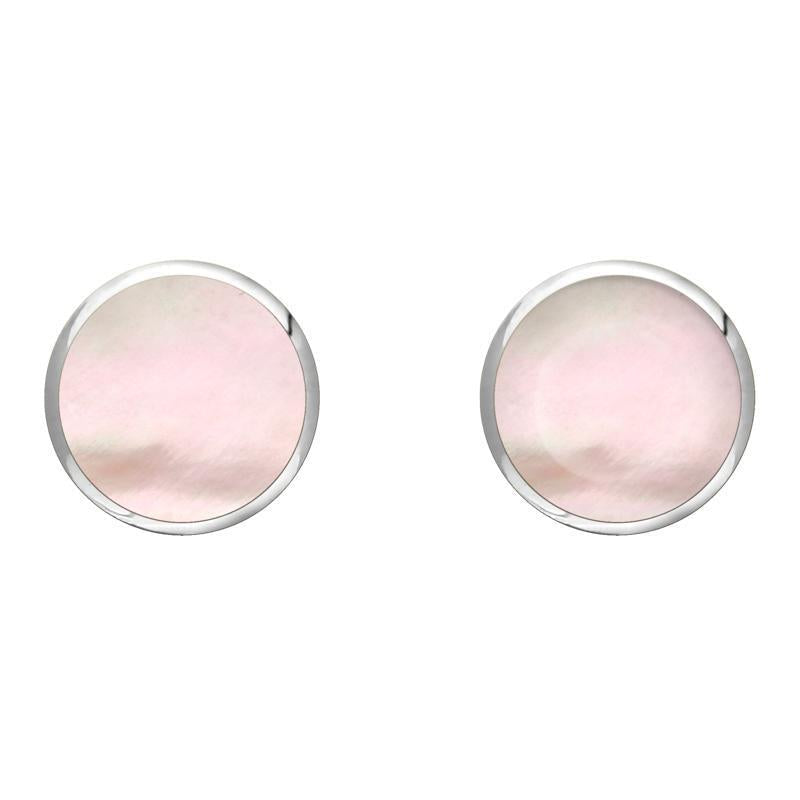 Sterling Silver Pink Mother of Pearl 8mm Classic Large Round Stud Earrings, E004