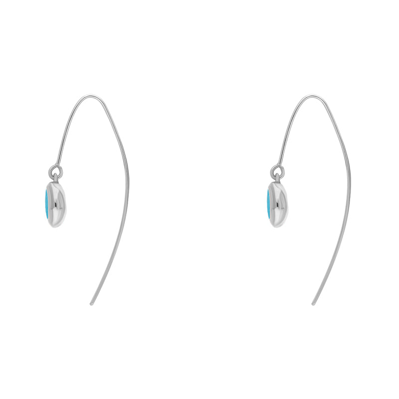 These versatile earrings feature two round and two star shaped cabochons of the finest Turquoise, sourced directly from the north east coast of Yorkshire. The stones are framed sterling silver. These elegant earrings are perfect for day to evening wear.
