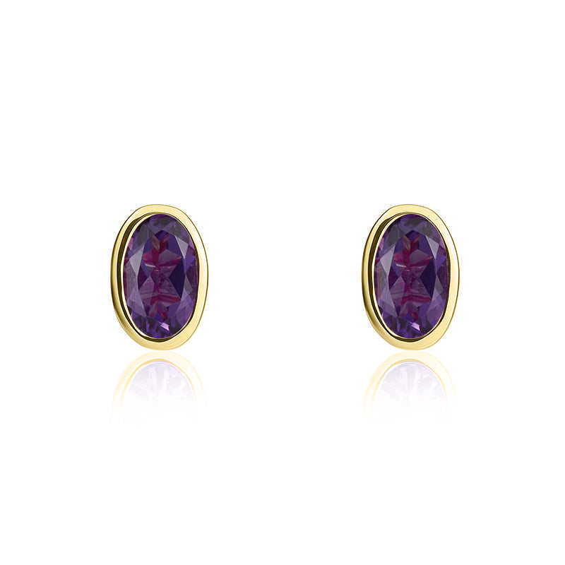 9ct Yellow Gold Amethyst 5x3mm Oval Rub Over Set Stud Earrings. 33-51-099.