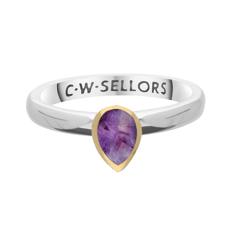 Click here to be notified by when 9ct Yellow Gold Sterling Silver Blue John Stepping Stones 5x7mm Pear Cut Bezel Set Ring becomes available.
