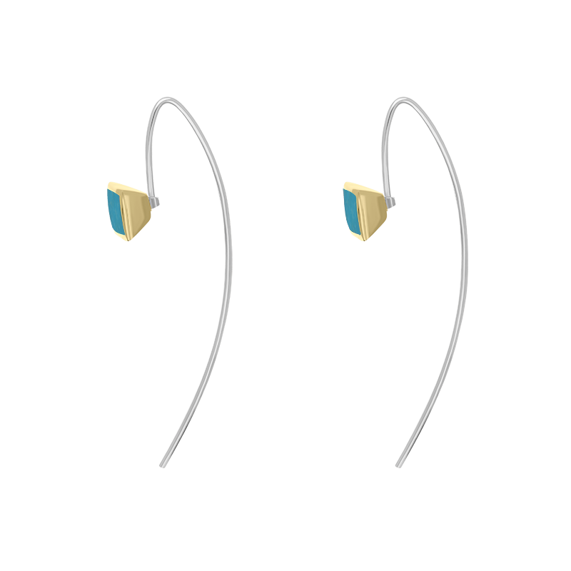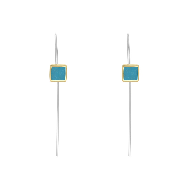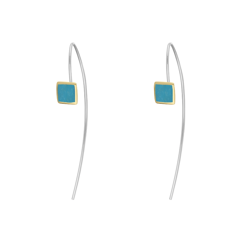9ct Yellow Gold Sterling Silver Turquoise Stepping Stones 5mm Square Hook Earrings