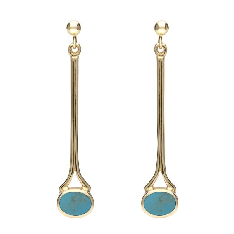 9ct Yellow Gold Turquoise Long Drop Earrings