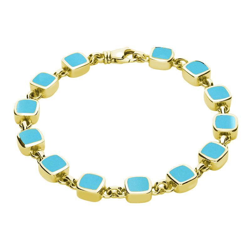 9ct Yellow Gold Turquoise Square Cushion Bracelet