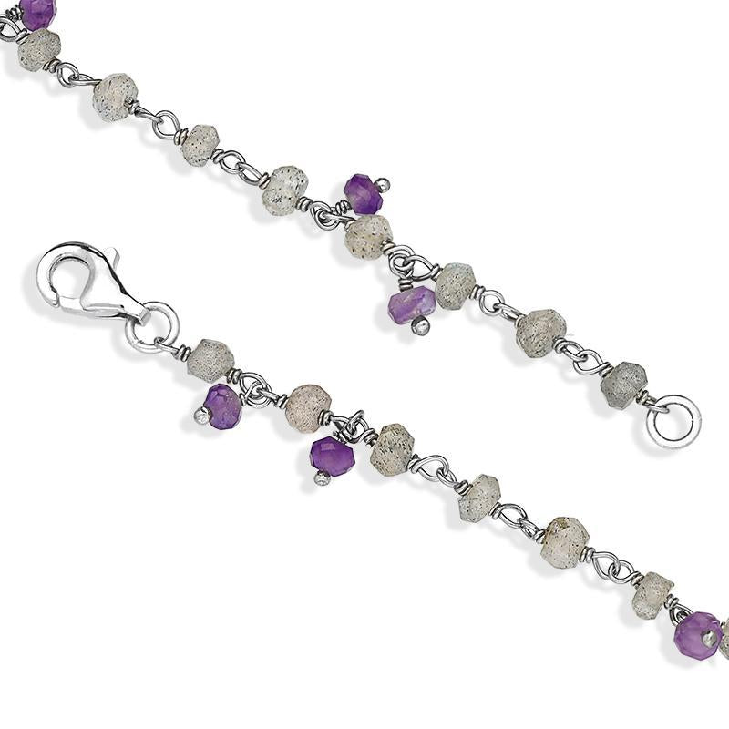 This Labradorite, Amethyst and sterling silver Shop Amber necklace features 4mm sized Labradorite gemstones adorned with additional Amethyst gemstones, making a stunning contrast, set on a delicate sterling silver chain link bracelet.  A perfect gift for someone special.