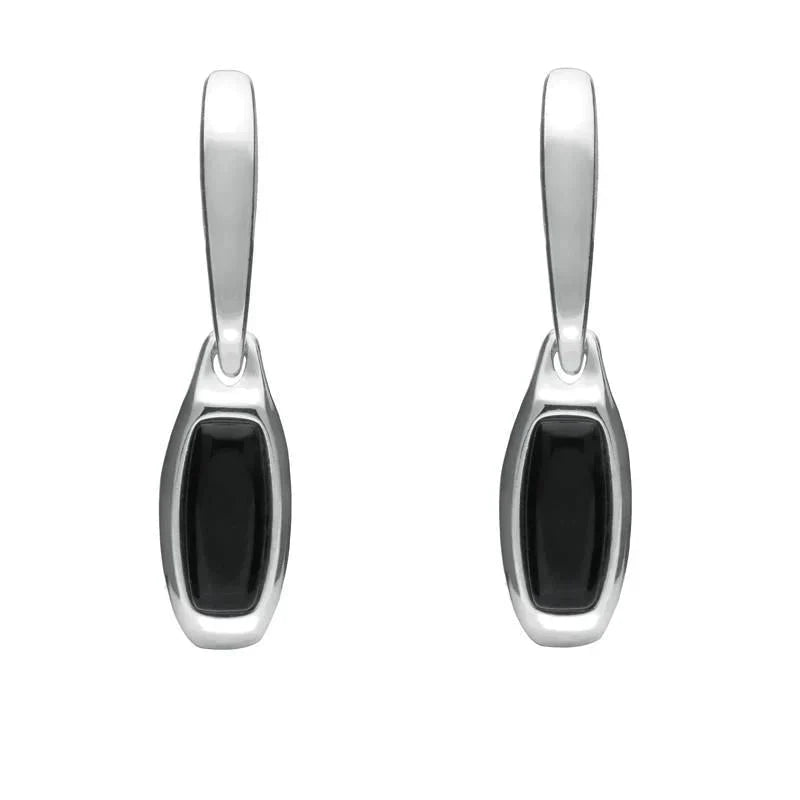 Sterling Silver Whitby Jet Oblong Hinged Drop Earrings