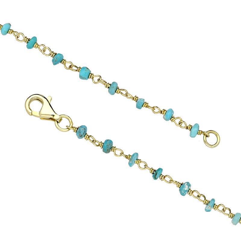 This Turquoise and yellow gold plated sterling silver Shop Amber necklace features 3mm sized Turquoise gemstones, set on a delicate yellow gold plated sterling silverd sterling silver chain link necklace. A perfect gift for someone special.