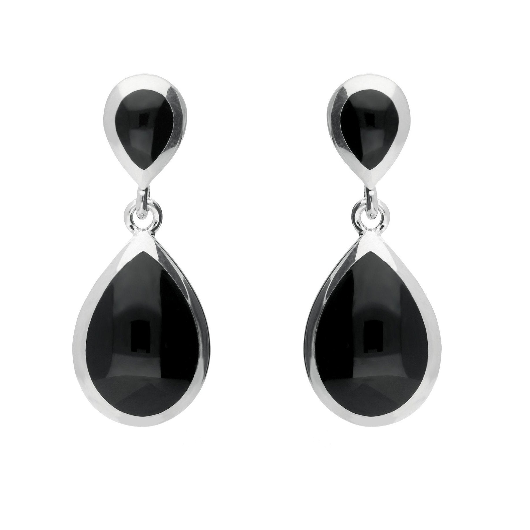 • Sterling Silver Whitby Jet Double Pear Drop Two Piece Set - S081 (00186056)