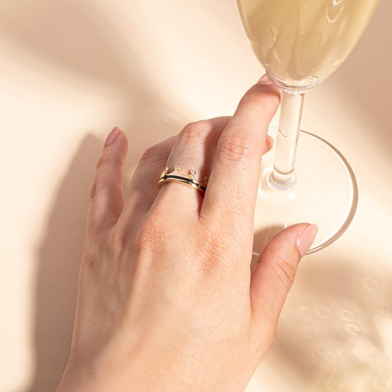 This exquisite ring features the finest Whitby Jet stone, sourced directly from the north east coast of Yorkshire. The beautiful 18ct yellow gold tiara shaped ring is embellished with 10 brilliant cut diamonds (0.10ct total).