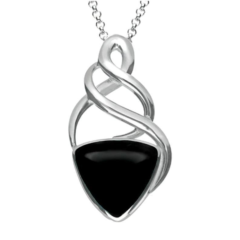 Shop Amber Sterling Silver Whitby Jet Curved Triangle Celtic Necklace, P2458.