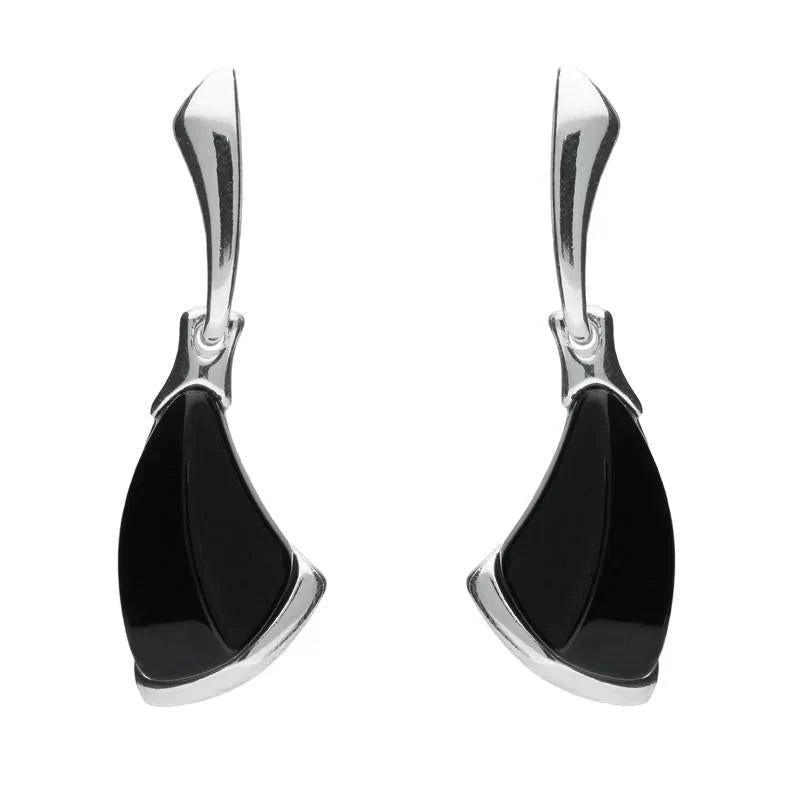 Sterling Silver Whitby Jet Curved Triangle Drop Earrings