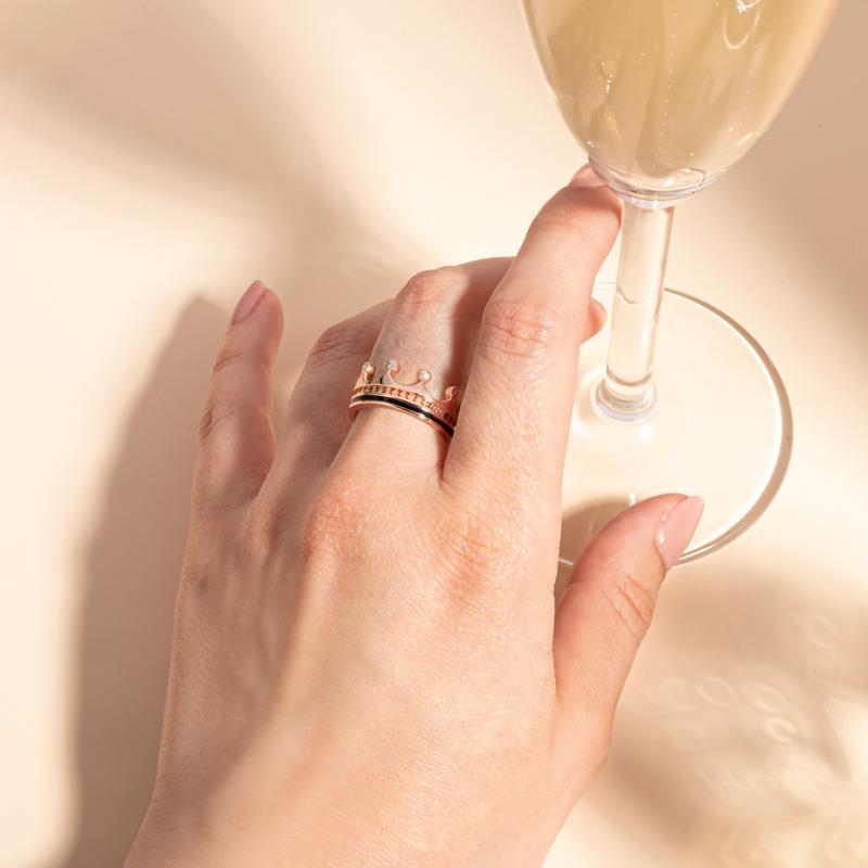 • 18ct Rose Gold Whitby Jet Diamond Tiara Patterned Band Ring - R1222 (CWN-003)
