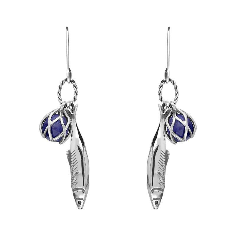 • Sterling Silver Emma Stothard Silver Darling Lapis Lazuli Float Charm Hook Earrings - E2582 (EST-024)