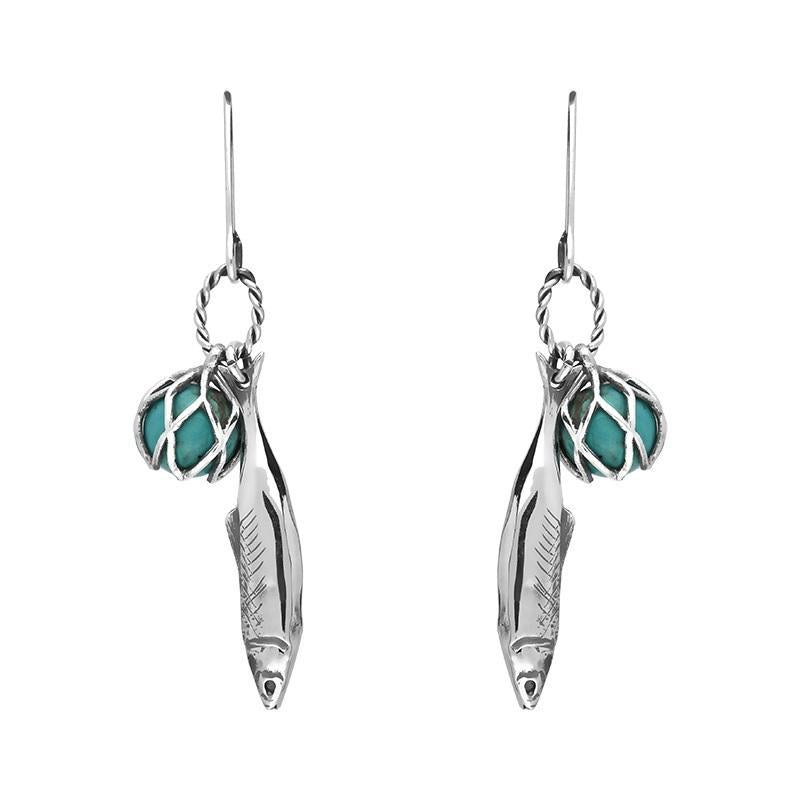 Sterling Silver Emma Stothard Silver DarlingTurquoise Float Charm Hook Earrings