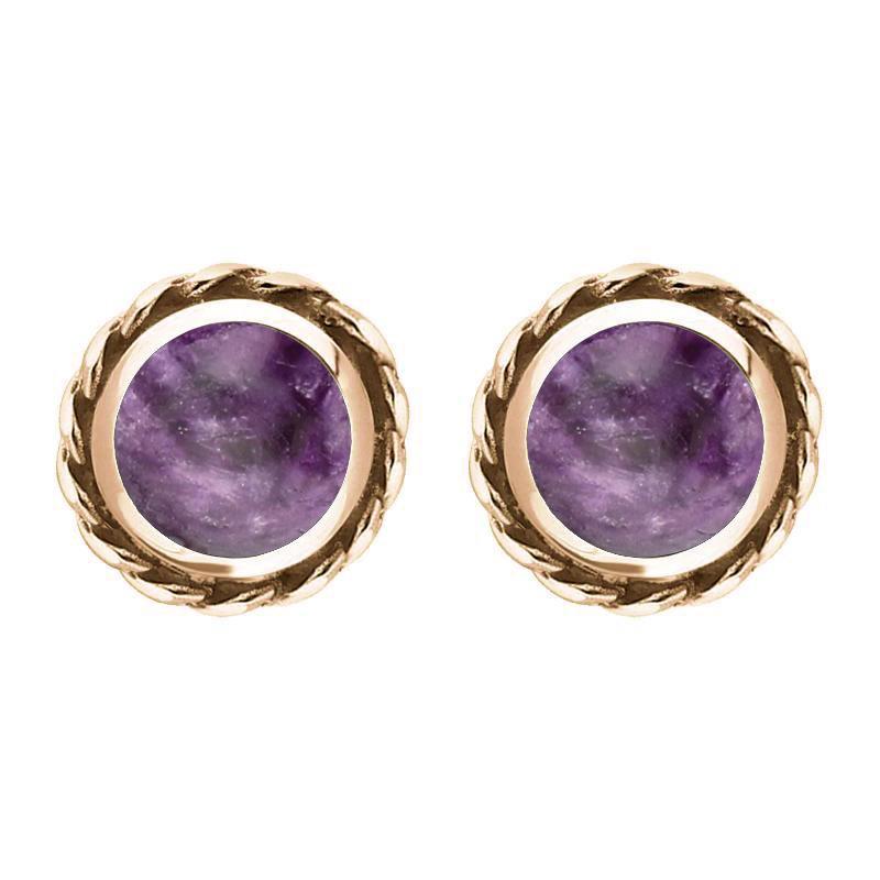 • 18ct Rose Gold Blue John Round Twist Edge Stud Earrings - E134 (HER-1927)
