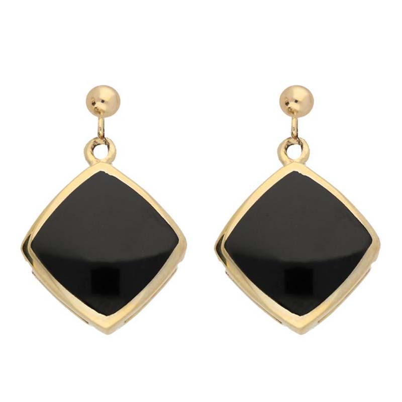9ct Yellow Gold Whitby Jet Cushion Drop Earrings, E1035.