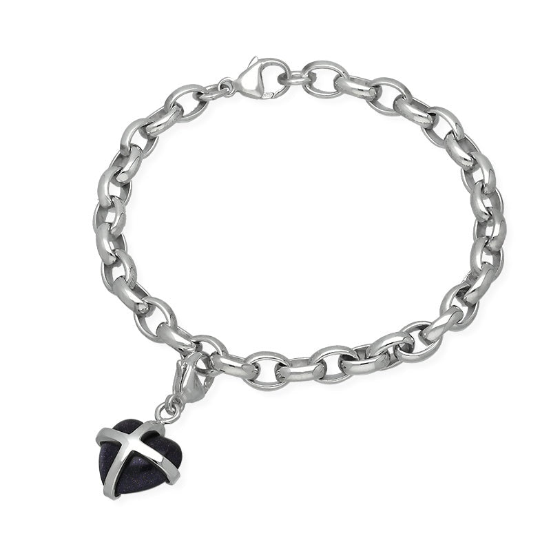 • 18ct White Gold Blue Goldstone Small Cross Heart Charm Bracelet - B1209 (CRH-071)