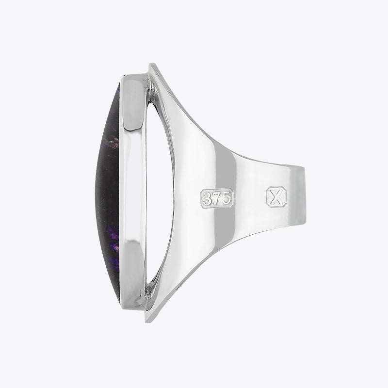9ct White Gold Blue John Hallmark Large Oval Ring. R013_FH.