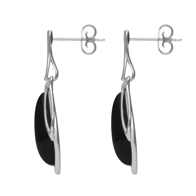 9ct White Gold Whitby Jet Open Marquise Drop Earrings, E2437