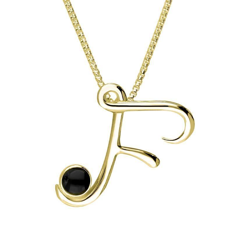 18ct Yellow Gold Whitby Jet Love Letters Initial F Necklace, P3453.