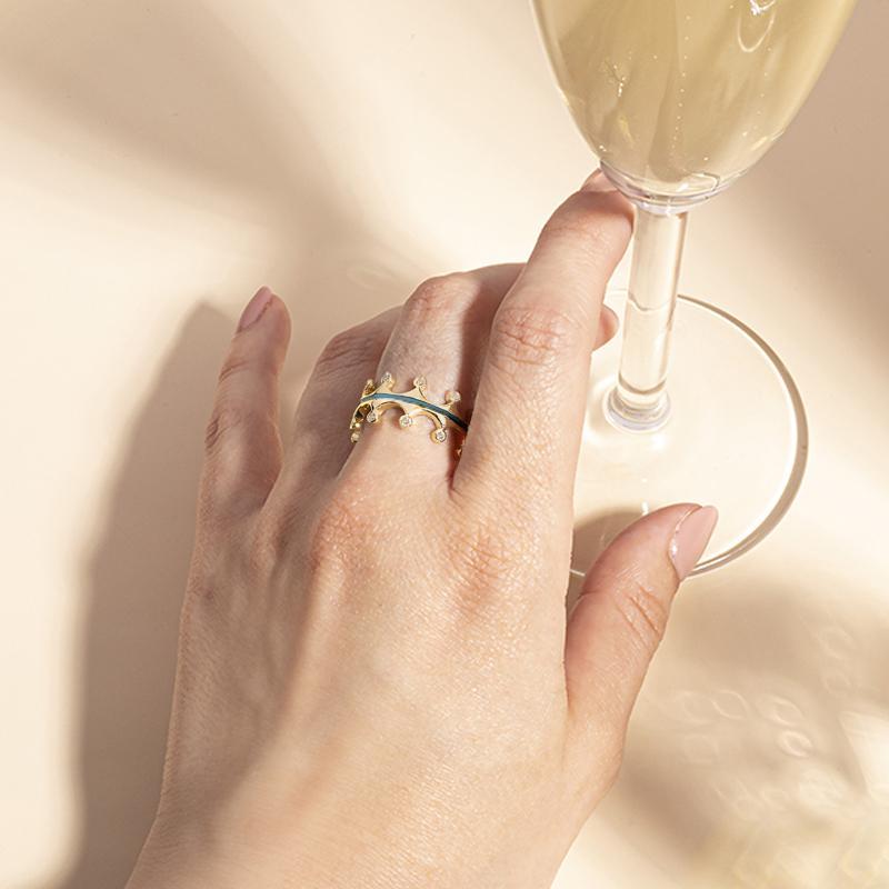 18ct Yellow Gold Turquoise Diamond Tiara Double Band Ring