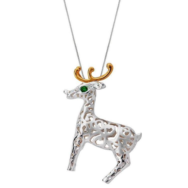Sterling Silver Green Zirconia Small Reindeer Necklace, P2794