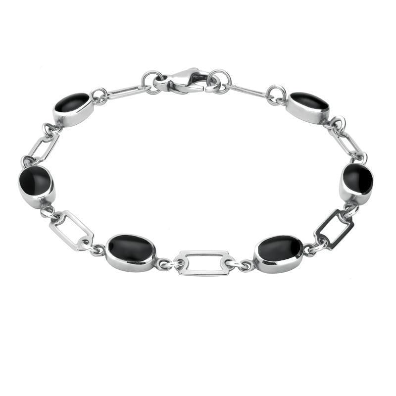Sterling Silver Whitby Jet Oval Linked Bracelet